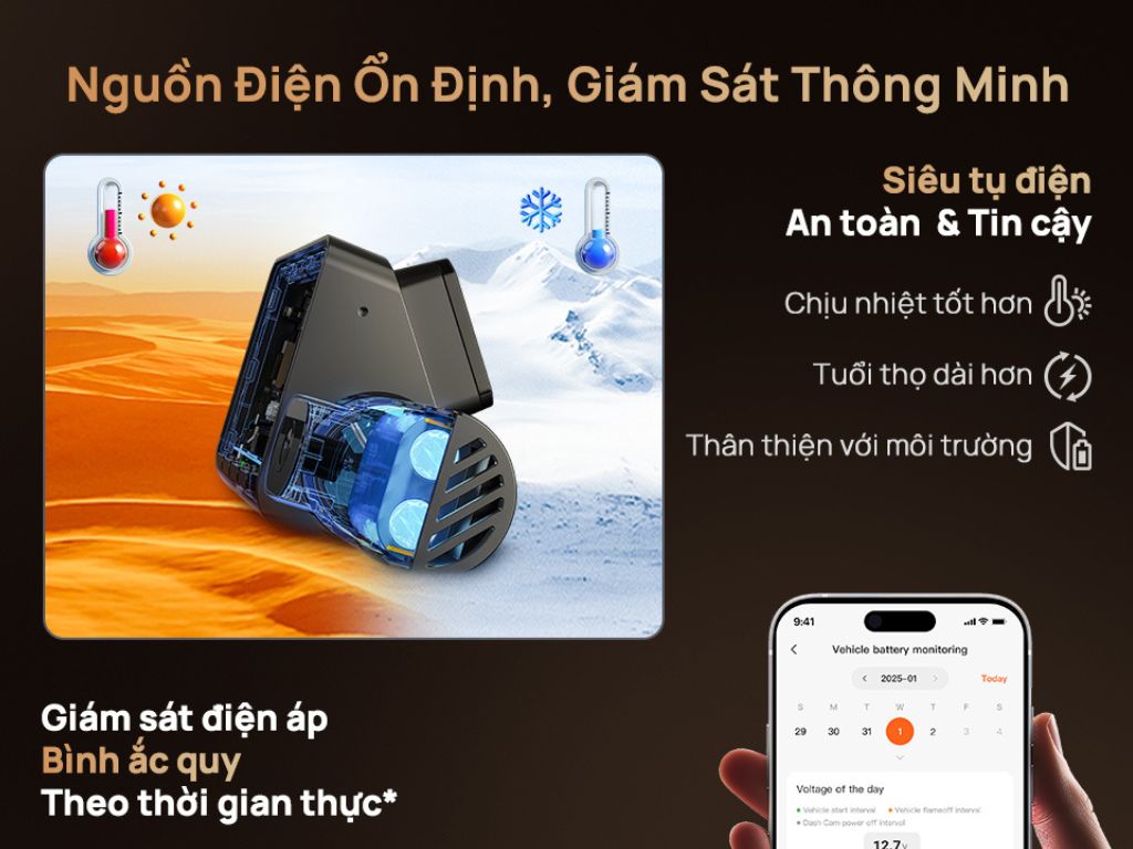 70mai T800 sử dụng siêu tụ điện thay vì pin thông thường, giúp: