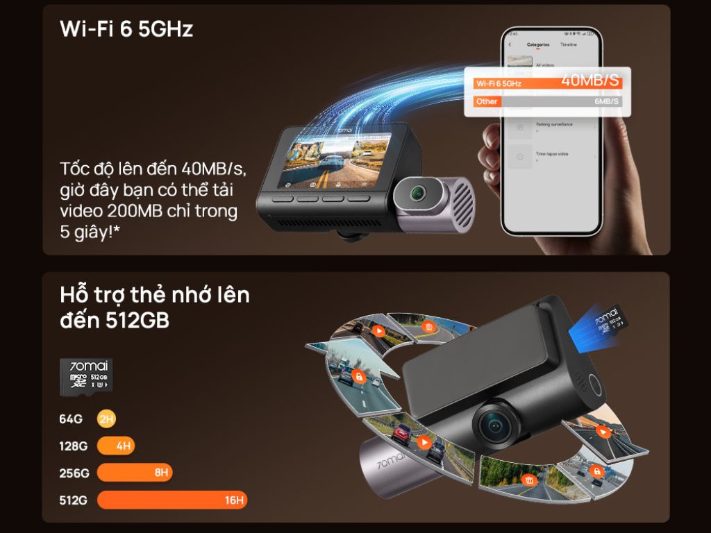 Thiết bị hỗ trợ ghi hình tốc độ cao giúp hình ảnh mượt, không bị giật. Điều này rất quan trọng khi xe chạy nhanh hoặc cần trích xuất video làm bằng chứng.