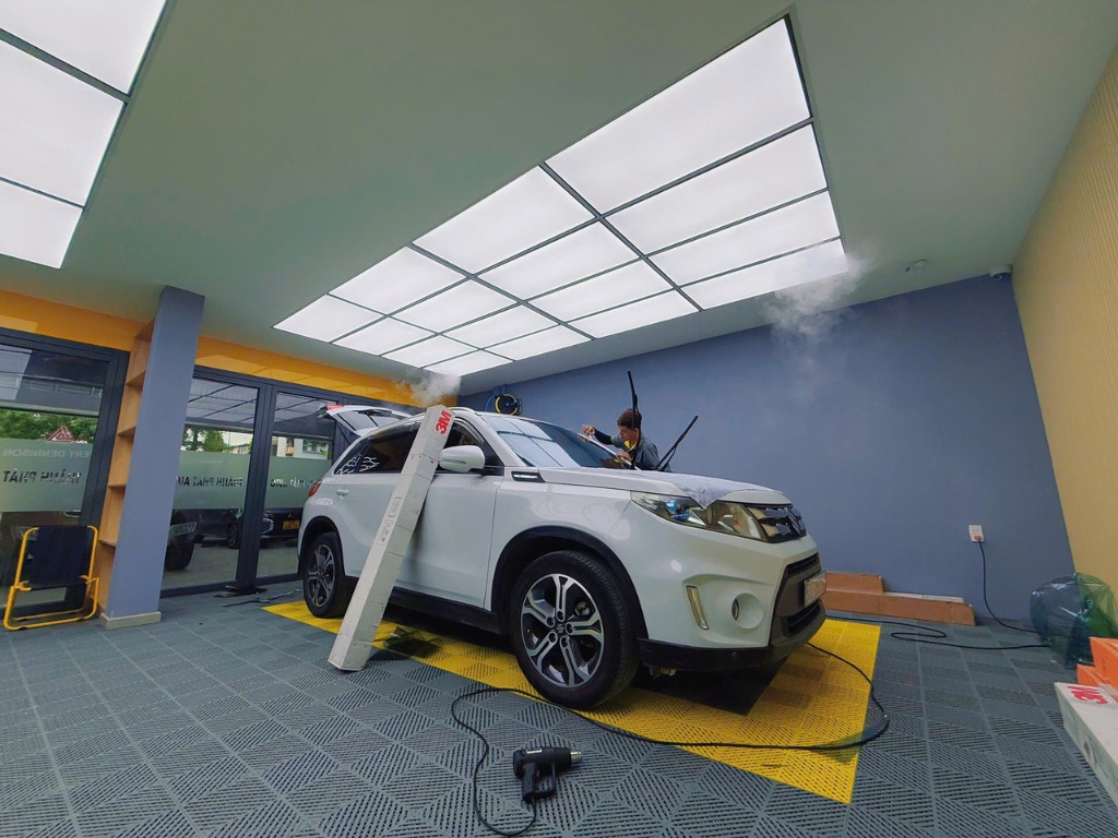 - Phòng dán phim tiêu chuẩn quốc tế – không bụi, không gió.